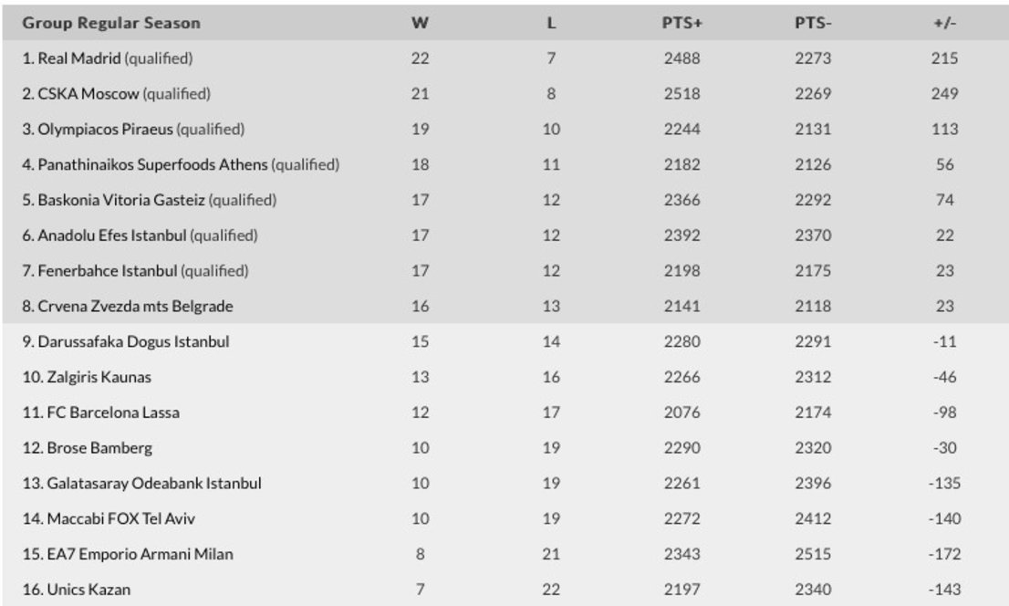 Summary results fixtures standings archive. Learn the current teams position in the standings at scores24.live! Find overall standings, euroleague home/away scoreboard.com provides euroleague standings, fixtures, live scores, results and match details with. Follow euroleague 2020/2021 standings, overall, home/away and form (last 5 matches) besides euroleague 2020/2021 standings you can find 5000+ competitions from more than 30. International basketball online standings euroleague, match calendar, detailed team statistics and performance table.